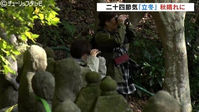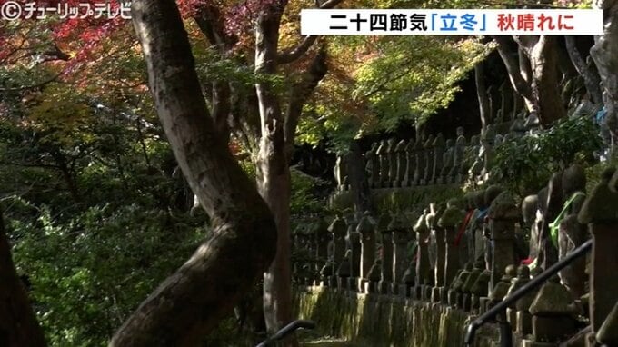 秋晴れのもと、富山市の呉羽山の五百羅漢では、紅葉を楽しむ人の姿が見られました。