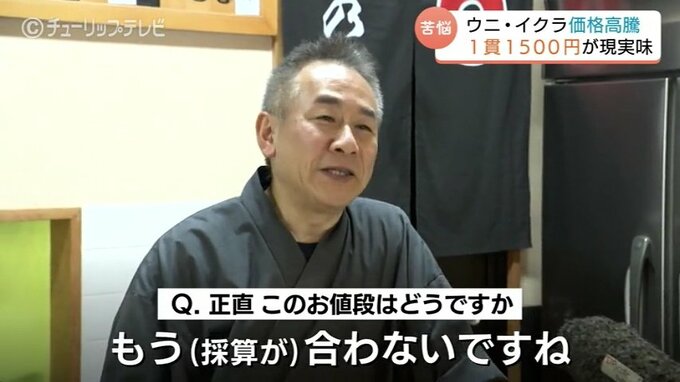 「もう(採算が)合わないですね。イクラは今の在庫が切れた時点でもし次仕入れるとなると1・5倍ぐらいの値上げせざると得なくなりますし、ウニももうこの価格、今の価格でもすでにウチとしては全然利益がないんで。適正価格で言うと1500円ぐらいにはなっちゃうかな」