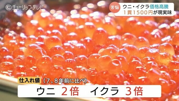仕入れ値はウニが7、8年前の倍。イクラは3倍に高騰していると言います。