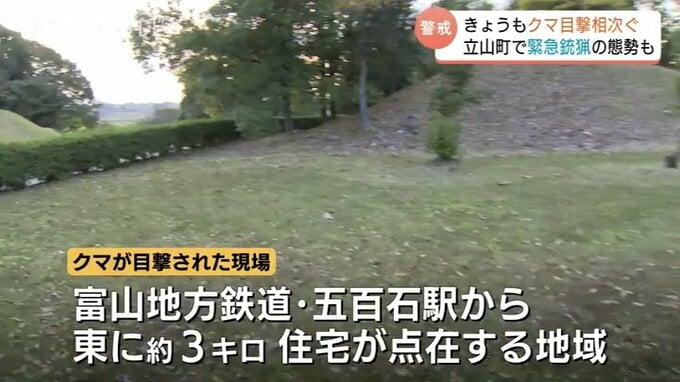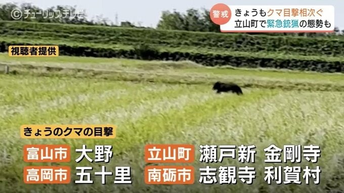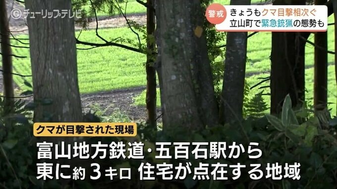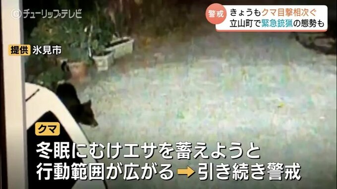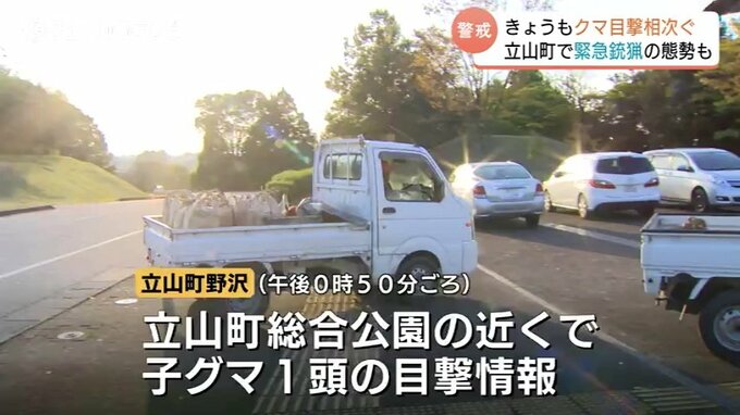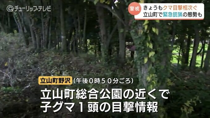 7日もクマの目撃が相次いだ富山県内。立山町では公園の近くで子グマの目撃情報があり、一時、緊急銃猟の態勢がとられましたが、姿を確認できず実施に至りませんでした。