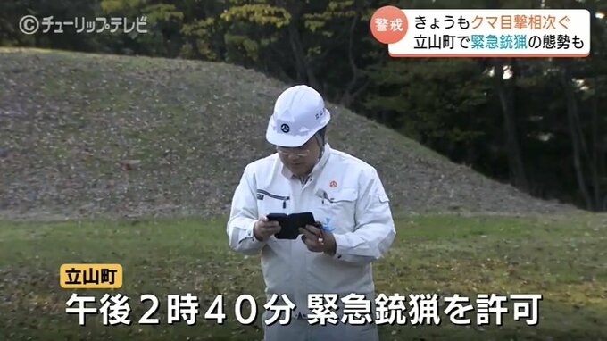 公園付近のやぶにクマが潜んでいるとみた立山町は、午後2時40分に緊急銃猟を許可。