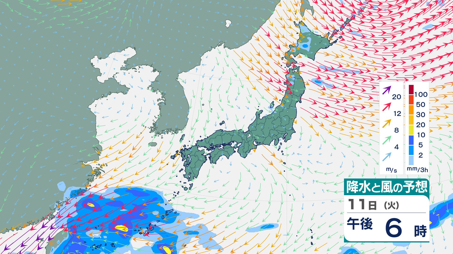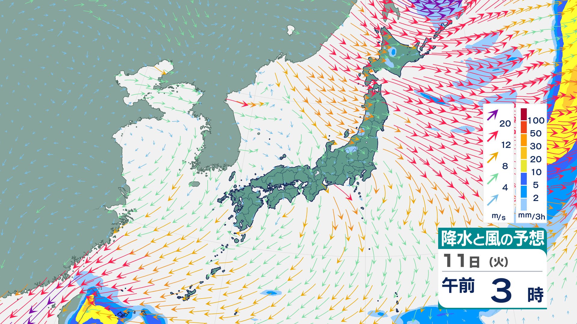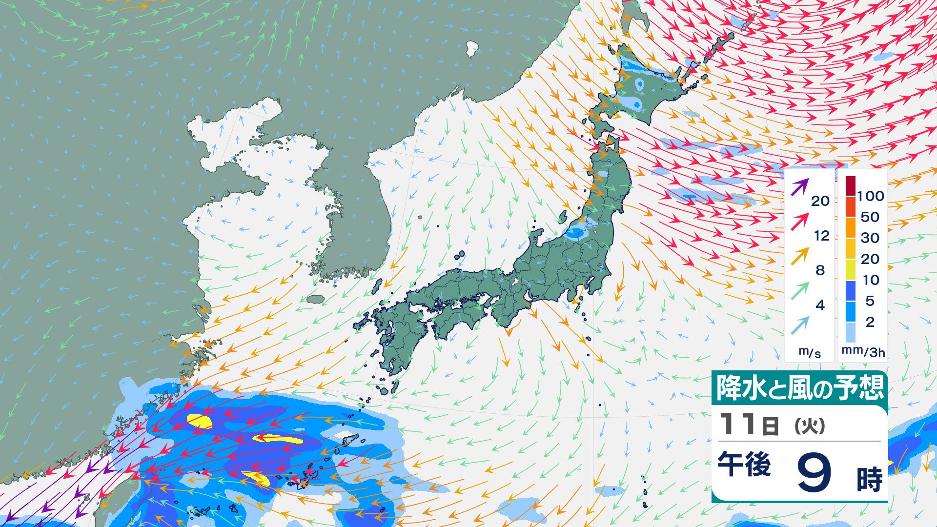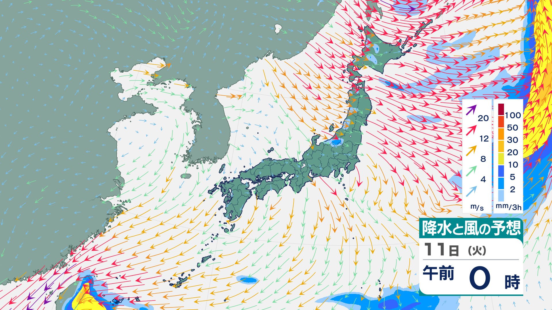 ニュースクリップ 【気象情報】北陸地方は10日はこの時期としては強い寒気が流れ込む見込み 大気の状態が非常に不安定に 明け方から夕方にかけて落雷や竜巻などの激しい突風に注意【雨と風のシミュレーション】 2025年11月9日(日) 16:15 国内 天気 11日(火)雨と風のシミュレーション