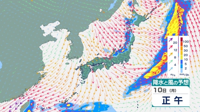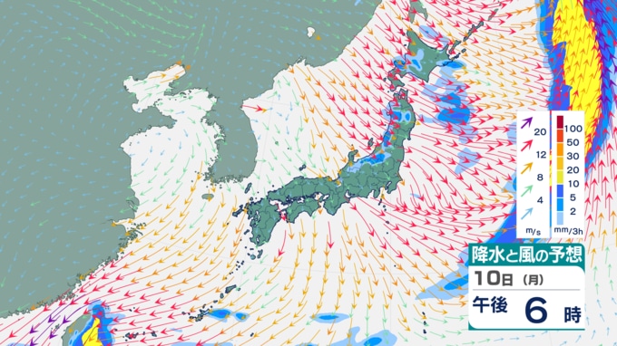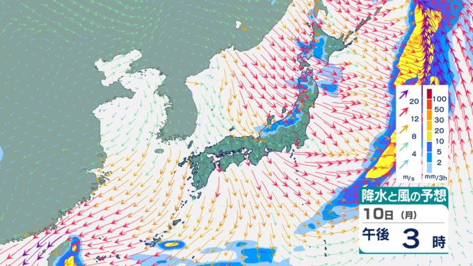 ニュースクリップ 【台風情報】台風26号(フォンウォン)1時間に30キロの速さで西北西へ 最大瞬間風速50メートルの予測も 13日午前には台湾方面か【雨と風のシミュレーション】 2025年11月10日(月) 12:01 国内 天気 10日(月)の雨風シミュレーション