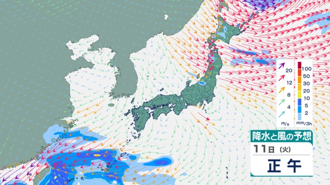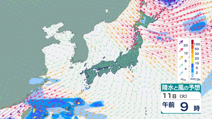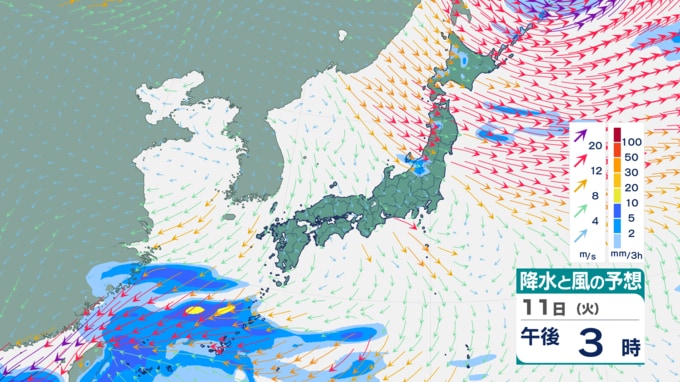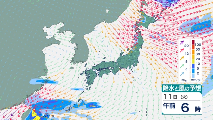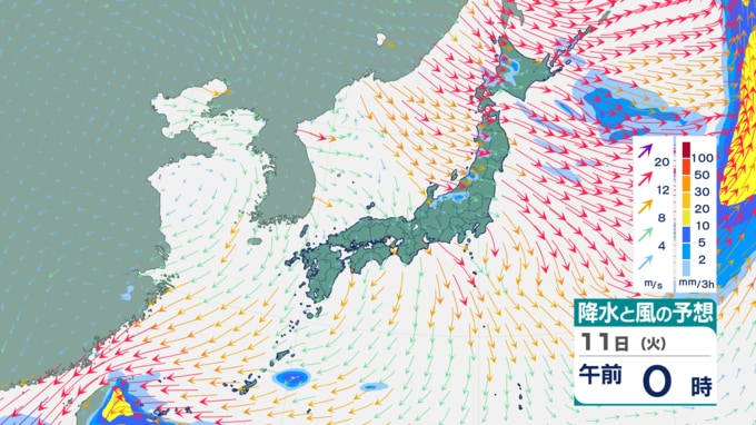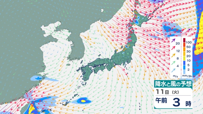 ニュースクリップ 【台風情報】台風26号(フォンウォン)1時間に30キロの速さで西北西へ 最大瞬間風速50メートルの予測も 13日午前には台湾方面か【雨と風のシミュレーション】 2025年11月10日(月) 12:01 国内 天気 11日(火)の雨風シミュレーション