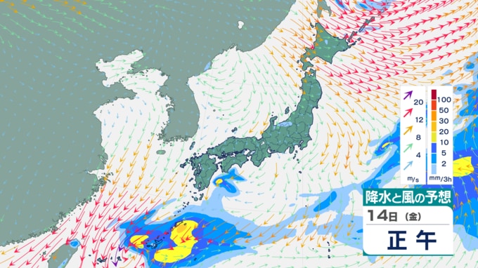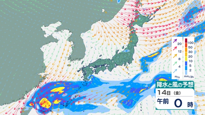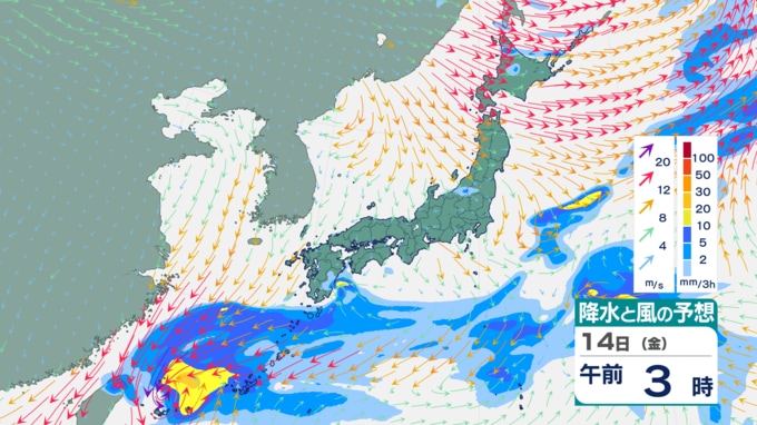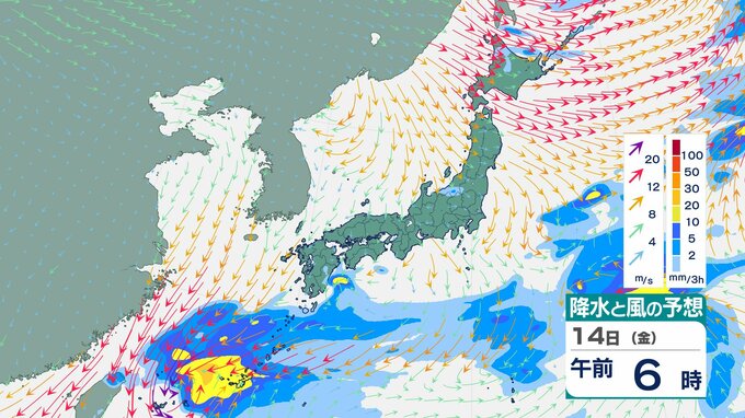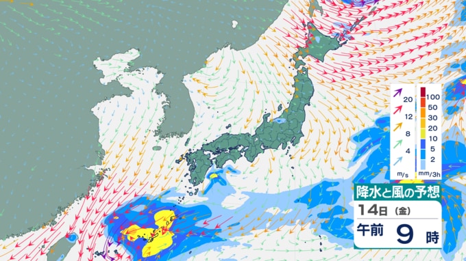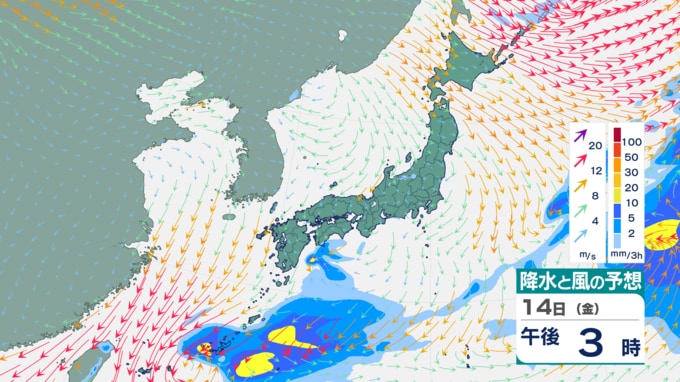 ニュースクリップ 【台風情報】台風26号(フォンウォン)1時間に30キロの速さで西北西へ 最大瞬間風速50メートルの予測も 13日午前には台湾方面か【雨と風のシミュレーション】 2025年11月10日(月) 12:01 国内 天気 14日(金)の雨風シミュレーション