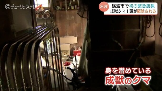砺波市の住宅の納屋に成獣のクマ1頭が侵入し、砺波市では初めてとなる緊急銃猟によるクマの駆除が行われました。富山県内で緊急銃猟によるクマの駆除は3例目です。