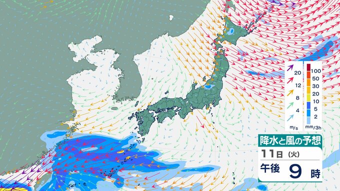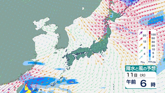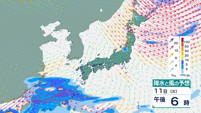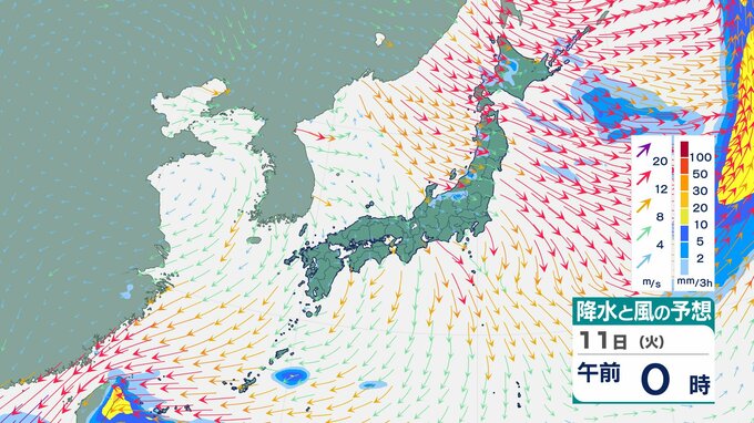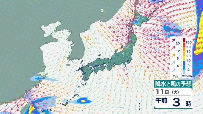 ニュースクリップ 【台風情報】台風26号(フォンウォン)11日は “強い” 勢力で “ゆっくり” に減速へ 進路は北北東に変わり台湾接近…その後は沖縄南へ【雨と風のシミュレーション】 2025年11月11日(火) 09:00 国内 天気 11日(火)雨と風のシミュレーション画像