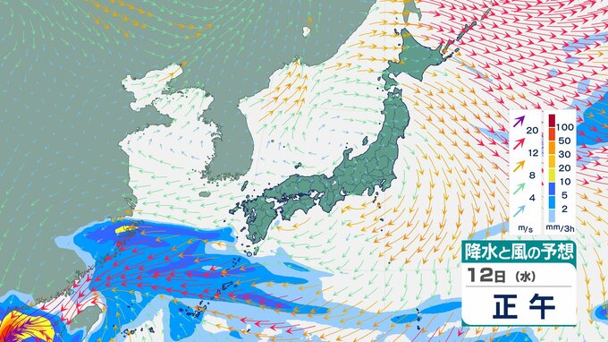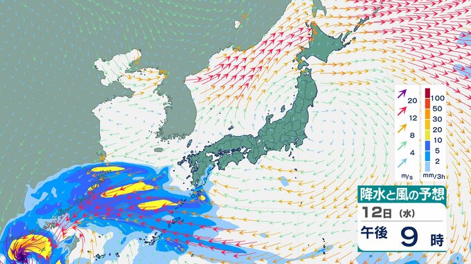 ニュースクリップ 【台風情報】台風26号(フォンウォン)11日は “強い” 勢力で “ゆっくり” に減速へ 進路は北北東に変わり台湾接近…その後は沖縄南へ【雨と風のシミュレーション】 2025年11月11日(火) 09:00 国内 天気 12日(火)雨と風のシミュレーション画像