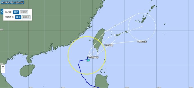 台風の予報進路は、予報の期間が長くなるほど誤差の幅(予報円)が大きくなります。最新の情報を確認するようにしてください。