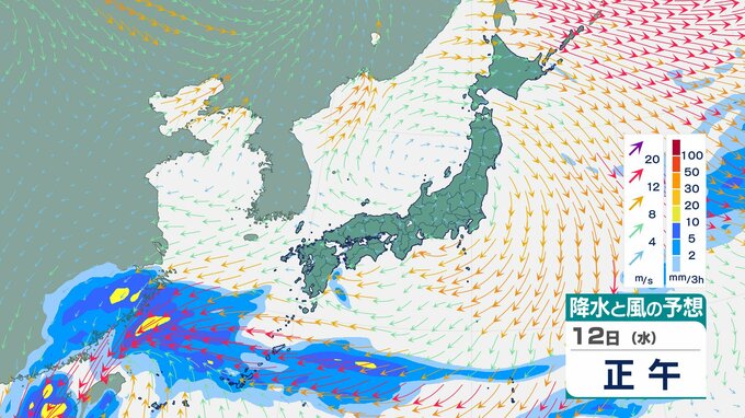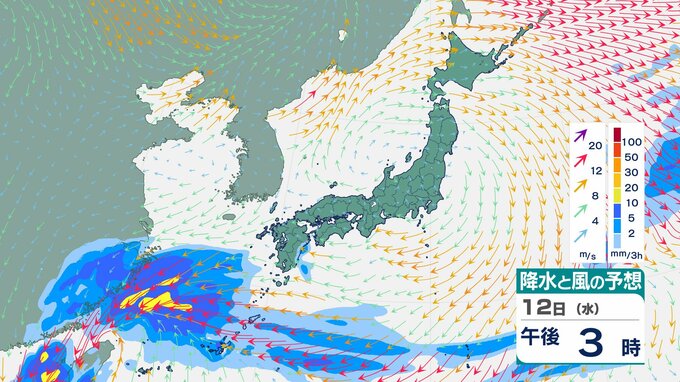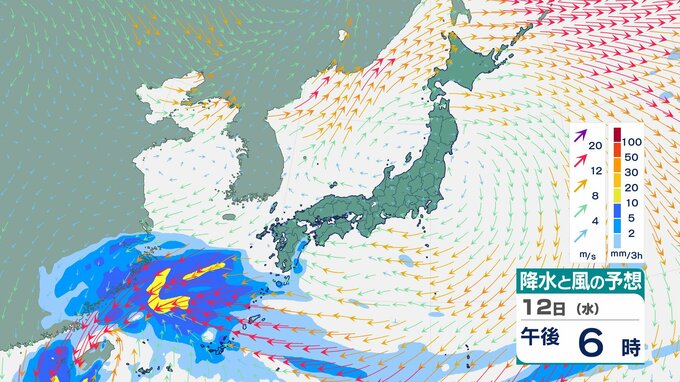 ニュースクリップ 【台風情報】台風26号(フォンウォン)このあと“急カーブ” 進路を東へ 13日朝に与那国島北北東へ接近 再び勢力強まる予想 時速35kmに加速し14日には温帯低気圧へ【雨と風のシミュレーション】 2025年11月12日(水) 11:10 国内 天気 12日(水)雨と風のシミュレーション画像