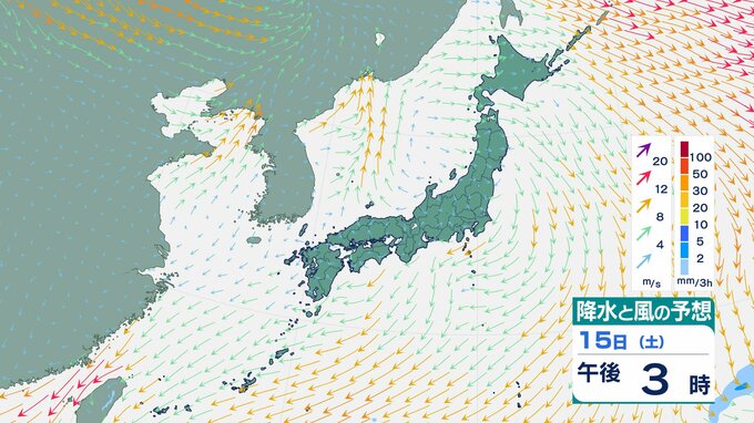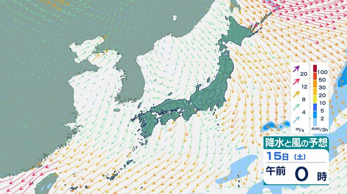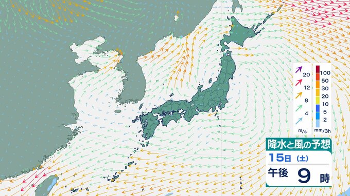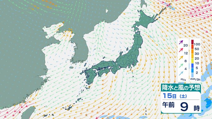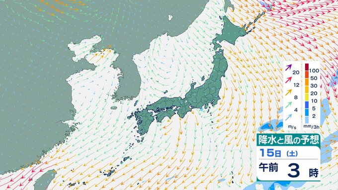 ニュースクリップ 【台風情報】台風26号(フォンウォン)このあと“急カーブ” 進路を東へ 13日朝に与那国島北北東へ接近 再び勢力強まる予想 時速35kmに加速し14日には温帯低気圧へ【雨と風のシミュレーション】 2025年11月12日(水) 11:10 国内 天気 15日(土)雨と風のシミュレーション画像