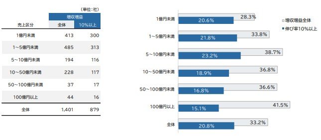 売上規模別では企業数において「1~5億円未満」が最も多く485社でした。出現率では「100億円以上」の大企業が41.5%でトップとなりました。