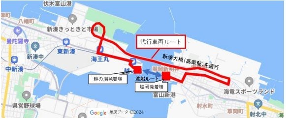 富山県は、射水市の伏木富山港新湊地区の県営渡船(通称:越ノ潟フェリー)について、ジャンボタクシーによる代行車両の社会実験を11月16日(日)と11月23日(日)の2日間行うと発表しました。
