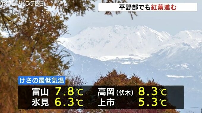 朝の最低気温は、富山市で7.8度、氷見で6.3度と少し寒い朝となりました。