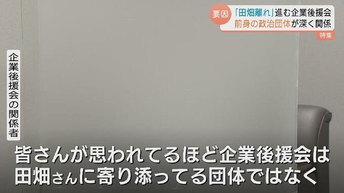 「前の長政会から引き継いだからそのままいるという企業さんはかなりたくさんある。皆さんが思われてるほど、企業後援会は田畑さんに寄り添ってやってる団体ではなく、一つこういう大きな問題があった瞬間に、確実に心が離れてしまう団体だと思う」