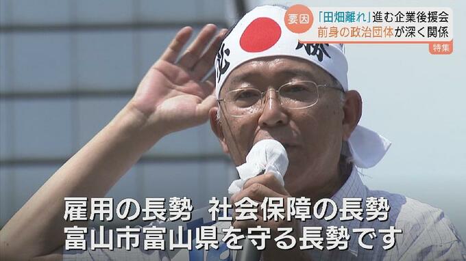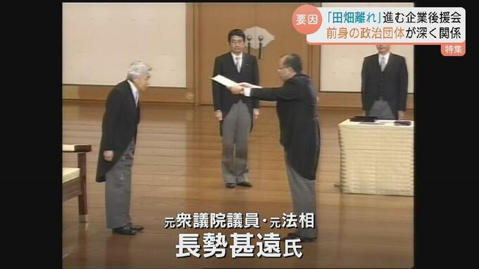 「元々、長勢甚遠さんが国会議員をされていたときに企業後援会としてあった長政会というのがあり、それを長勢さんが引退をし、それを引き継ぐ形で田畑さんが議員になり」