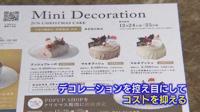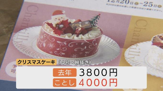 店では11月1日からクリスマスケーキの予約受付を開始しましたが、止まらない物価高を背景に、4号のホールケーキは税抜きで3800円から4000円に。去年から200円値上げすることに決めました。