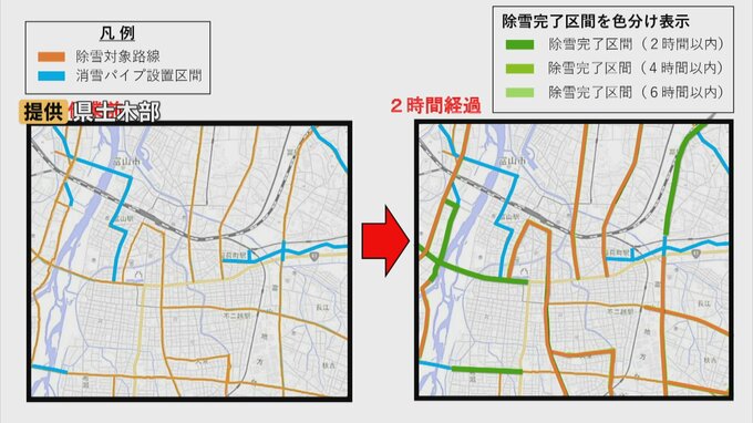 県は6時間以内に除雪が完了した場所を地域ごとに確認することができる「除雪作業マップ」を、今年度新たにホームページで公開します。