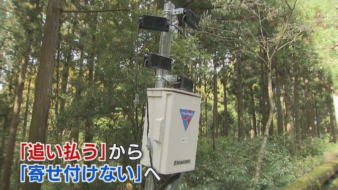 クマが生息する山と人里の間に「クマソニック」を設置し、緩衝地帯をつくることで、人里への出現を防ぐことがねらいでこれまでの「追い払う対策」から「寄せ付けない対策」へと変化させました。