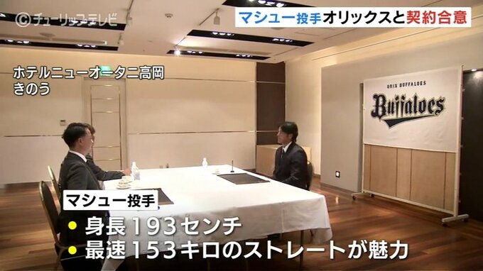 プロ野球・オリックスから育成ドラフト2位で指名された富山GRNサンダーバーズ、シャピロマシュー一郎投手がオリックスとの入団契約に合意しました。