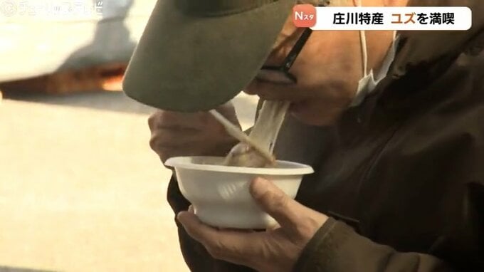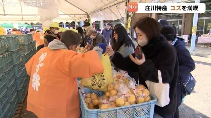 イベントでは、およそ5トンの生ユズのほか、「ゆずみそ」などの加工品や、ユズの皮をふんだんに使用した「ゆずぜんざい」「ゆずうどん」といった温かいご当地料理も用意され、県内外から訪れた大勢の人たちが旬の味覚を満喫しました。