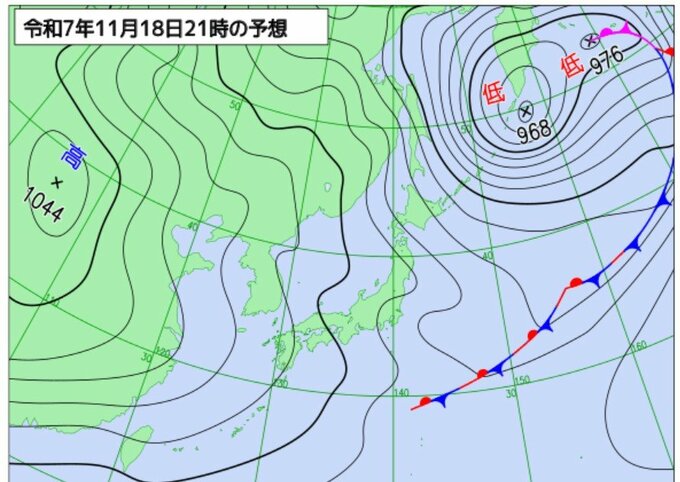 気象庁によりますと、日本付近は冬型の気圧配置となっており、北陸地方の上空約5500メートルには、氷点下27℃以下のこの時期としては強い寒気が流れ込む見込みです。
