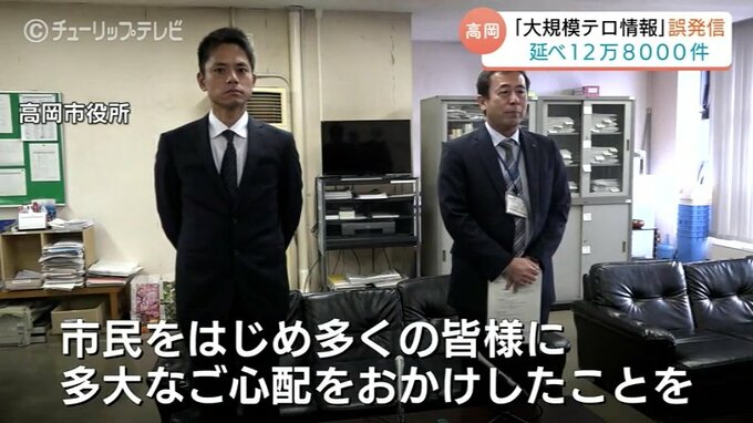 高岡市によりますと原因は故障した「Jアラート」の受信機を修理していた業者が動作確認を行っていたところ、テストメールが誤って発信されたということです。