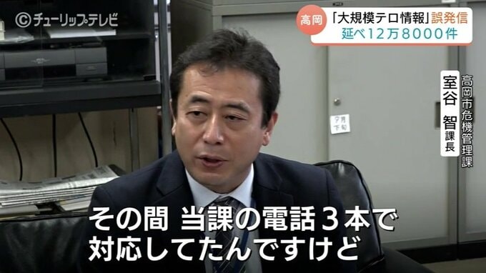 「誤報でしたと送った時点で(問い合わせ)はピタッと止まりましたがその間、当課の電話3本で対応していましたが、それはずっとなり続けていました」「届いた情報が真実であるか、誤報であるかの確認をする必要がございました」