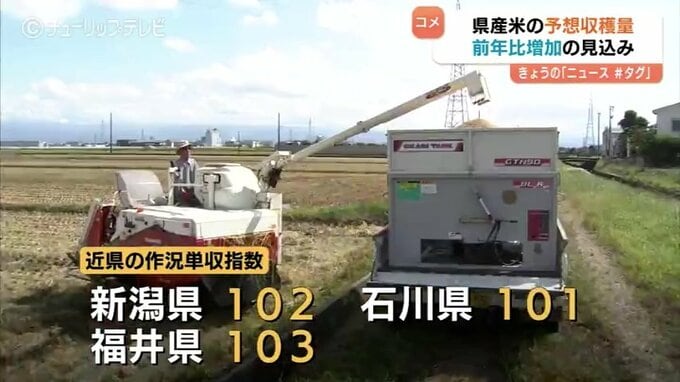 そのほか、近県の作況単収指数は新潟県が102、石川県が101、福井県が103となっています。