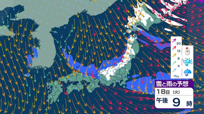 【気象情報】北陸地方は18日は上空約5500メートルに氷点下27度以下のこの時期としては強い寒気が流れ込み大気の状態が非常に不安定に 夜遅くまで、落雷や竜巻などの激しい突風、降ひょう、急な強い雨に注意【雨と雪シミュレーション】 2025年11月18日(火) 18:56 国内 暮らし・マネー 18日(火)雪と雨のシミュレーション