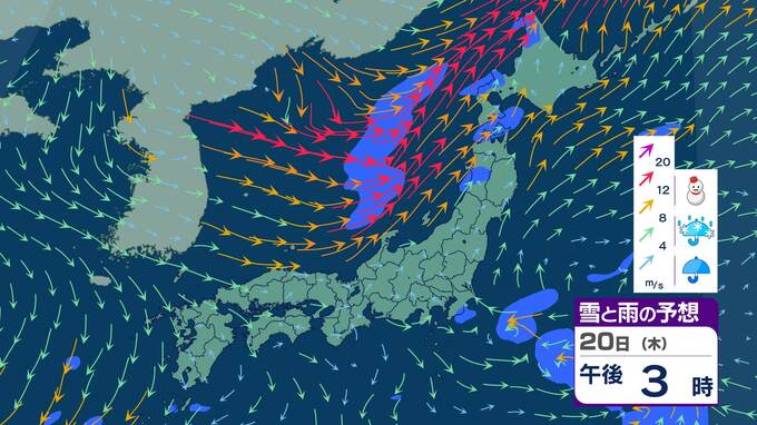 【気象情報】北陸地方は18日は上空約5500メートルに氷点下27度以下のこの時期としては強い寒気が流れ込み大気の状態が非常に不安定に 夜遅くまで、落雷や竜巻などの激しい突風、降ひょう、急な強い雨に注意【雨と雪シミュレーション】 2025年11月18日(火) 18:56 国内 暮らし・マネー 20日(木)雪と雨のシミュレーション
