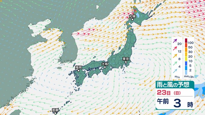 ニュースクリップ 【気象情報】北陸地方 21日夜遅くかけ大気の状態 “非常に不安定” …積乱雲が発達「激しい突風」「落雷」「急な強い雨」に注意!【雨と風のシミュレーション】 2025年11月21日(金) 10:13 国内 天気 23日(日)雨と風のシミュレーション