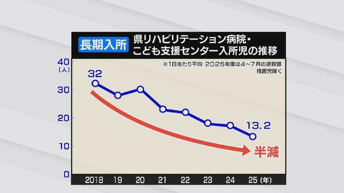 医療的ケア児や、重症心身障害児の長期・短期入所を担う県リハ病院の子ども棟。