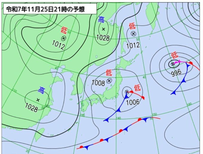 26日にかけて、北陸地方の上空約5500メートルには氷点下27℃以下の寒気が流れ込む見通しです。気象庁はこの寒気を「この時期としては強い」と表現しています。