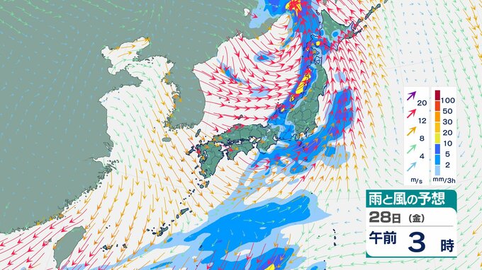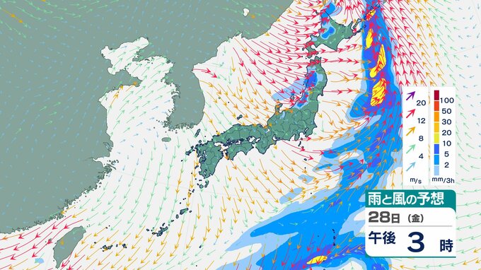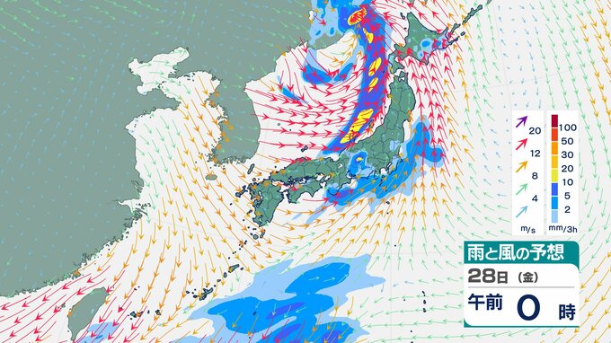 ニュースクリップ 【台風情報】台風のたまご!もうすぐ12月なのに?夜にも台風に発達か…フィリピン付近の熱帯低気圧、南シナ海を西へ【雨と風のシミュレーション】 2025年11月25日(火) 13:05 国内 天気 28日(金)雨と風のシミュレーション画像