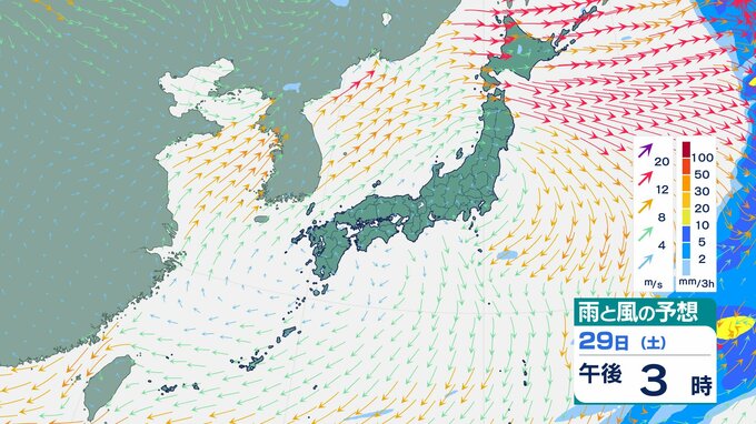 ニュースクリップ 【台風情報】台風のたまご!もうすぐ12月なのに?夜にも台風に発達か…フィリピン付近の熱帯低気圧、南シナ海を西へ【雨と風のシミュレーション】 2025年11月25日(火) 13:05 国内 天気 29日(土)雨と風のシミュレーション画像