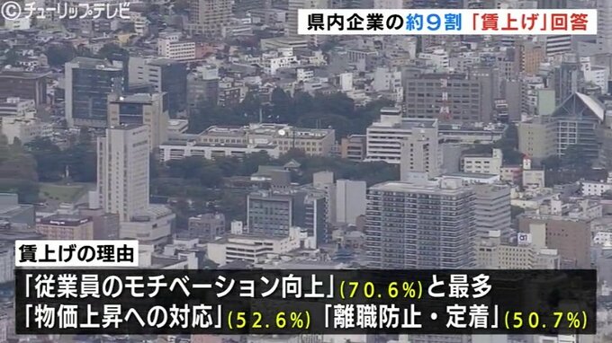 富山県が企業を対象に実施した調査で、「賃上げを実施する」と回答した企業は、全体のおよそ9割と、前の年から横ばいとなりました。