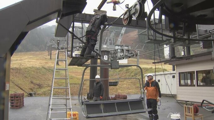 富山市の立山山麓スキー場では、12月13日のオープンに向けてリフトの取り付け作業が行われました。