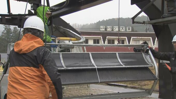 この日は、職員が全長およそ500メートルのリフトに4人乗り82台の座席を丁寧に取り付けていきました。