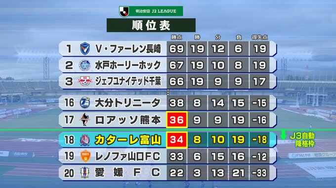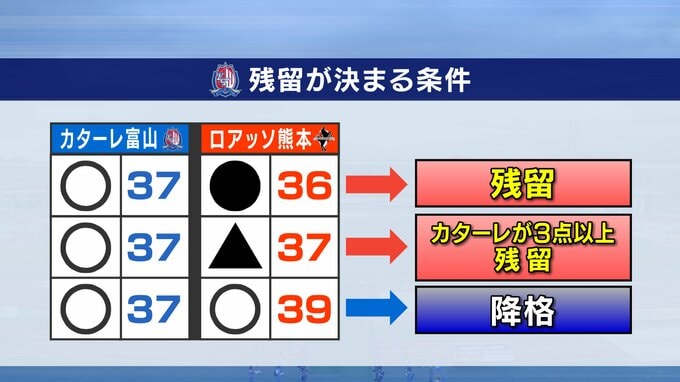 そのうえで熊本が敗れれば、カターレは残留、熊本が勝つと、降格が決まります。