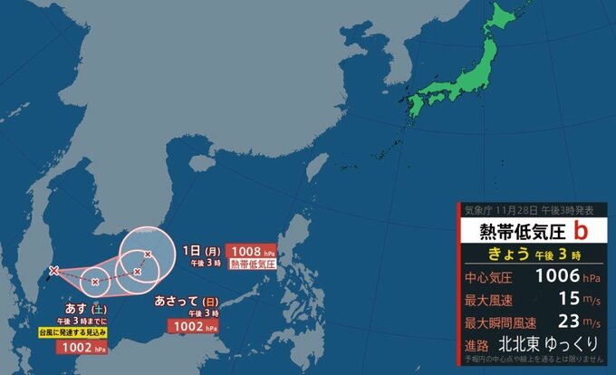 12月1日にかけ進路が北向きに変化へ