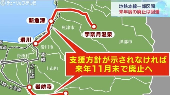 厳しい経営状況が続く富山地方鉄道の本線をめぐって、沿線自治体が地鉄への財政支援の方針を示し、地鉄が検討していた来年度中の一部区間の廃止は回避されることになりました。