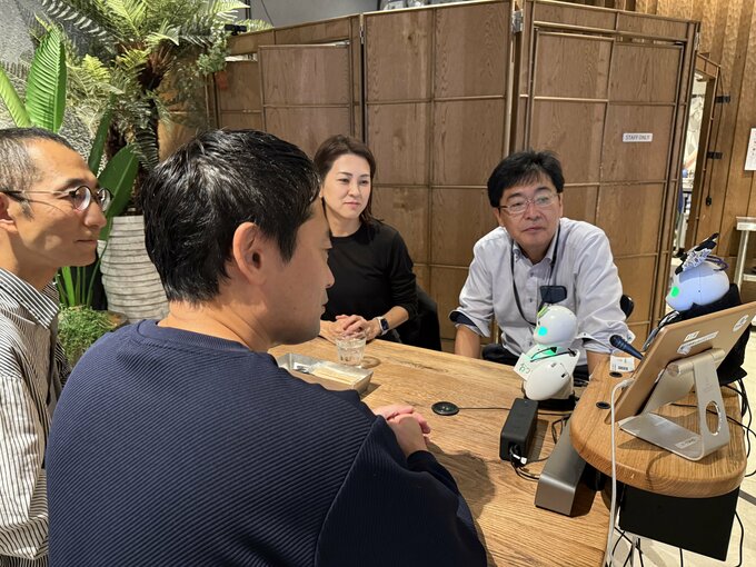 「OriHime(オリヒメ)」は遠隔操作で動く分身ロボットです。カメラ、マイク、スピーカーが搭載され、6つのモーターで動きます。AIは搭載されておらず、パソコンやスマートフォンを使って人間が動かします。
