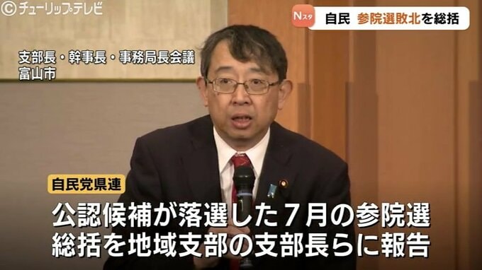 自民党県連は30日、富山市内で会合を開き、公認候補が落選した今年7月の参院選の総括について、地域支部の支部長らに報告しました。