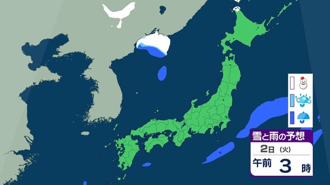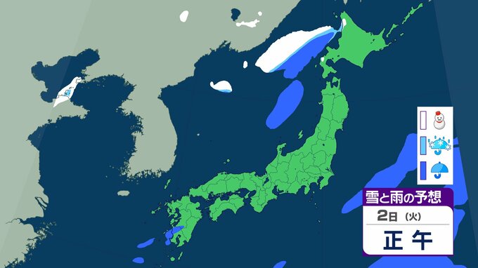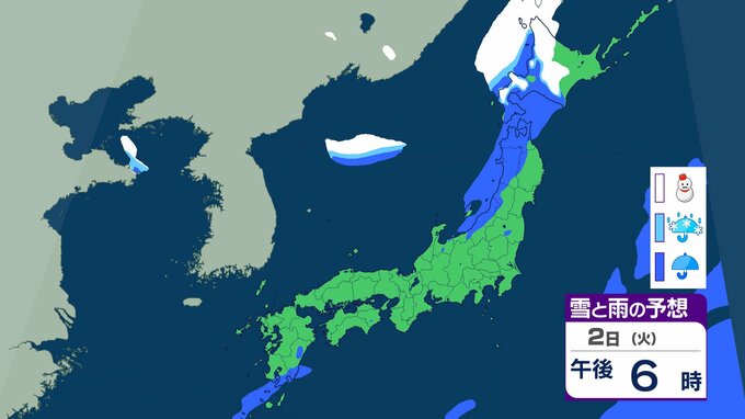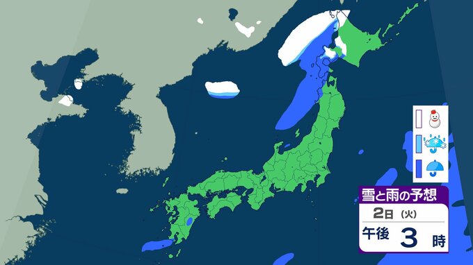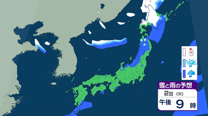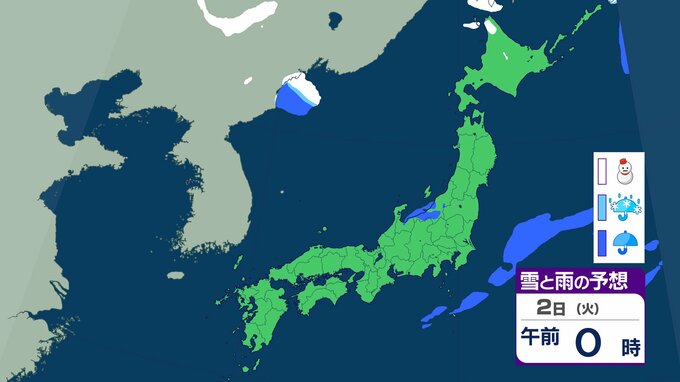 ニュースクリップ 【気象情報】北日本から西日本 落雷や竜巻など警戒 を 大気の状態が非常に不安定に【雨と雪のシミュレーション】 2025年12月1日(月) 10:53 国内 天気 2日(火)雨と雪のシミュレーション