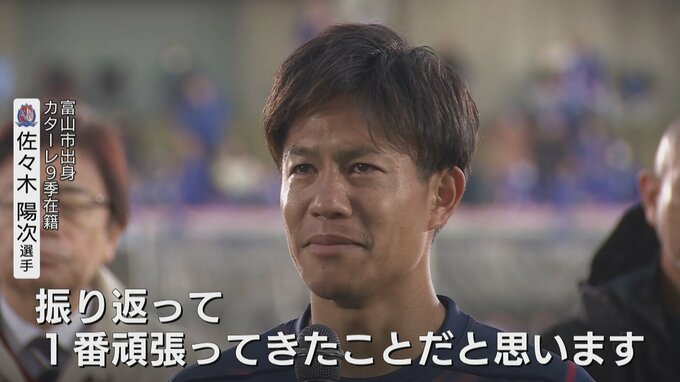 「毎週末、皆様の前で、プレーできたことは、とても幸せでした。試合に出た以上にベンチ外となるサッカー選手生活だったことも事実です。どんな状況でも、どんな扱いでも、次、試合に出たときに結果を残せるように。そして、若い選手たちの士気が下がらないように、環境づくりをしてきたことは、振り返って、1番頑張ってきたことだと思います。関わってくれたすべての皆様のおかげで、素敵なサッカー選手生活を送ることができました。本当に、プロ11年間、佐々木陽次を、ありがとうございました」