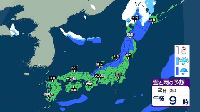 【雪情報】近畿地方上空約1500mに氷点下6度以下のこの時期としては強い寒気が流れ込む見込み 3~4日頃にかけて山地を中心に雪が降り、平地でも積雪となる可能性が【雪と雨のシミュレーション】 2025年12月2日(火) 12:49 2日(火)雪と雨のシミュレーション