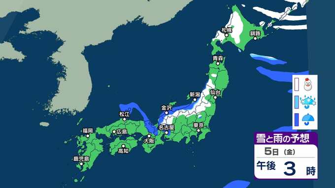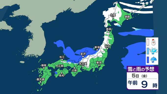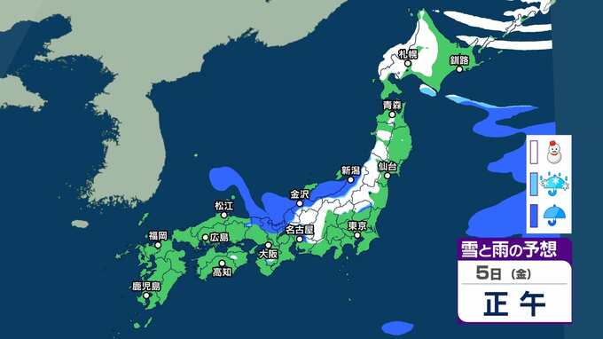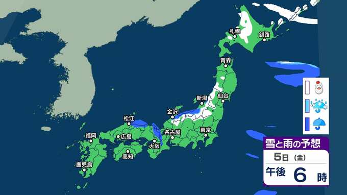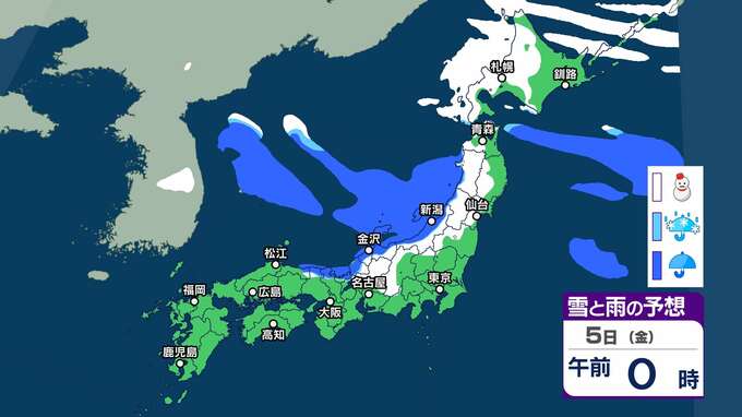 【雪情報】近畿地方上空約1500mに氷点下6度以下のこの時期としては強い寒気が流れ込む見込み 3~4日頃にかけて山地を中心に雪が降り、平地でも積雪となる可能性が【雪と雨のシミュレーション】 2025年12月2日(火) 12:49 5日(金)雪と雨のシミュレーション