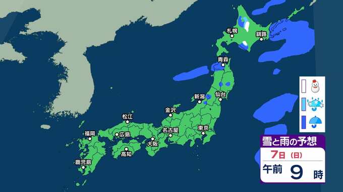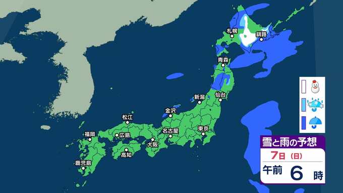 【雪情報】近畿地方上空約1500mに氷点下6度以下のこの時期としては強い寒気が流れ込む見込み 3~4日頃にかけて山地を中心に雪が降り、平地でも積雪となる可能性が【雪と雨のシミュレーション】 2025年12月2日(火) 12:49 7日(日)雪と雨のシミュレーション