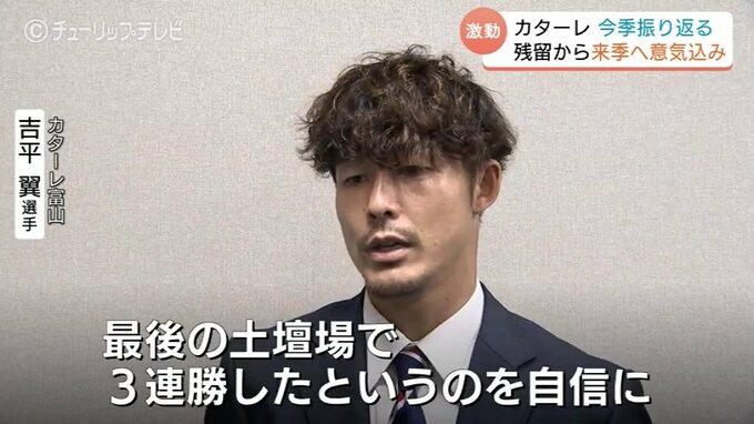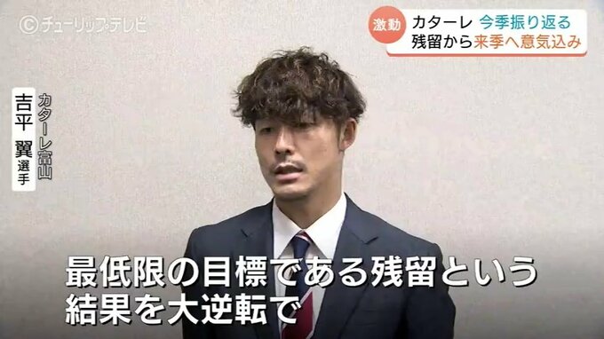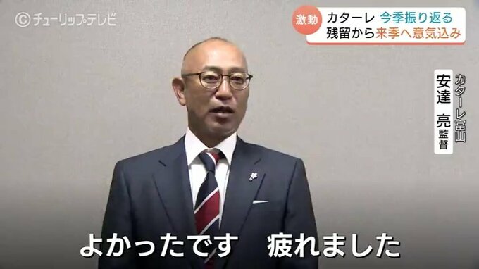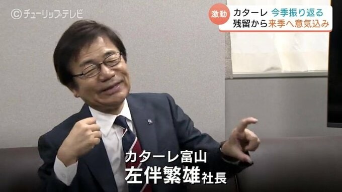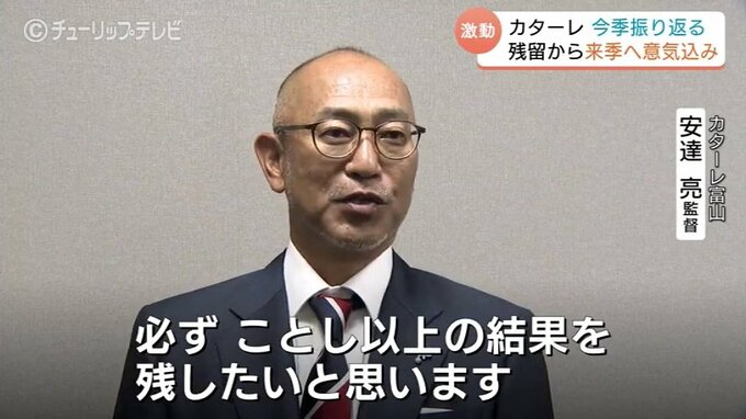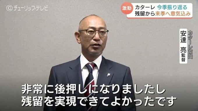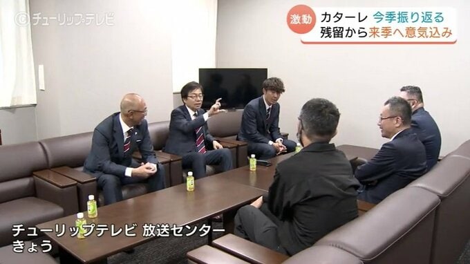 サッカー明治安田J2で奇跡の残留を決めたカターレ富山は2日、監督や選手がチューリップテレビを訪れ、今シーズンの激闘を振り返るとともに、来シーズンへの意気込みを語りました。